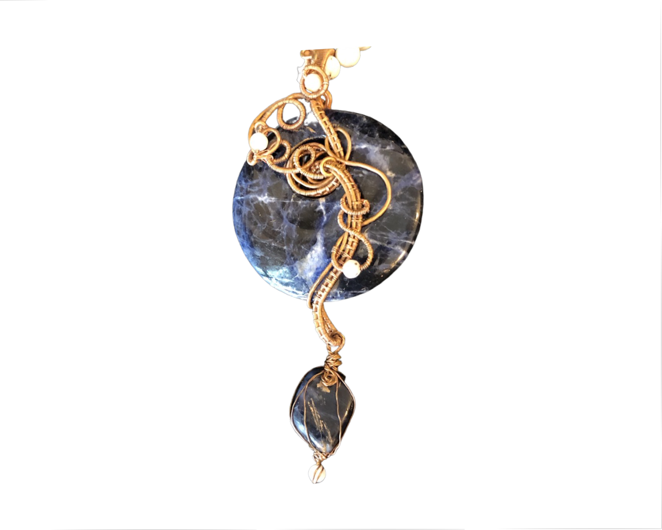 Sodalite pendant set with howlite beads and moonstone. This gorgeous piece is suitable for daily wear and will complement casual outfits to any business attire.