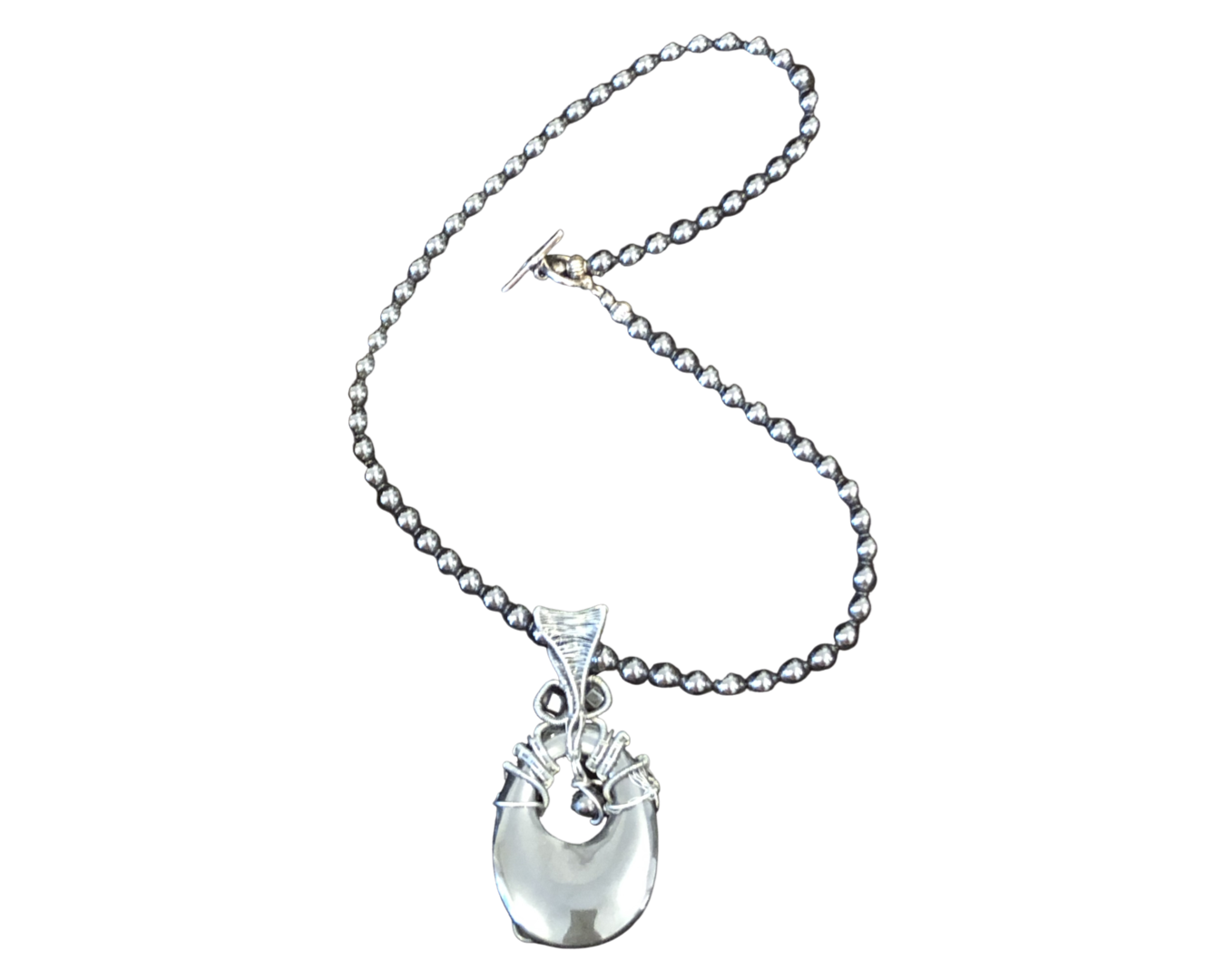 Vintage Hematite oval-shaped pendant set with 8mm hematite beads.